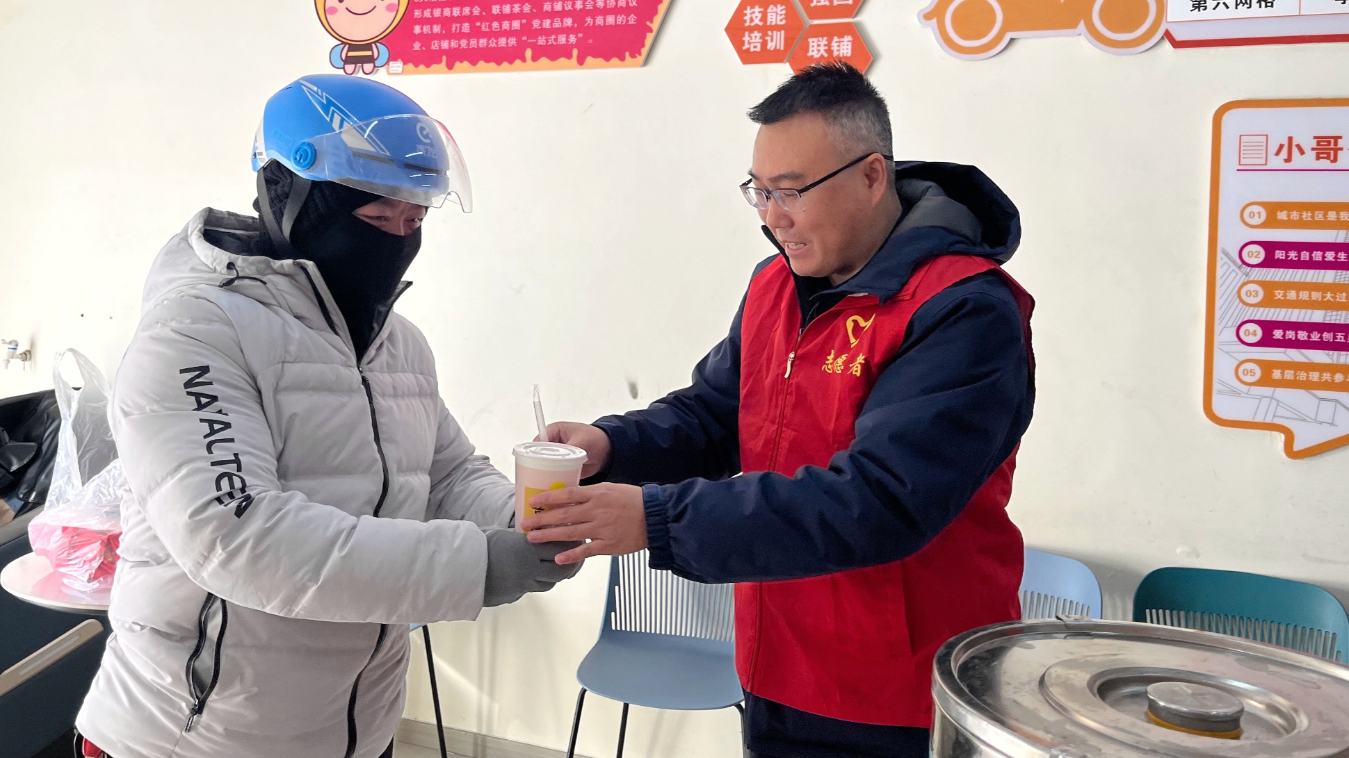 “这杯姜茶不仅暖身,更暖心,有党组织的惦记,我们干活更有劲了。”一名刚送完餐的外卖骑手接过热气腾腾的姜茶后感慨道。